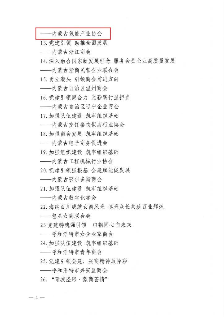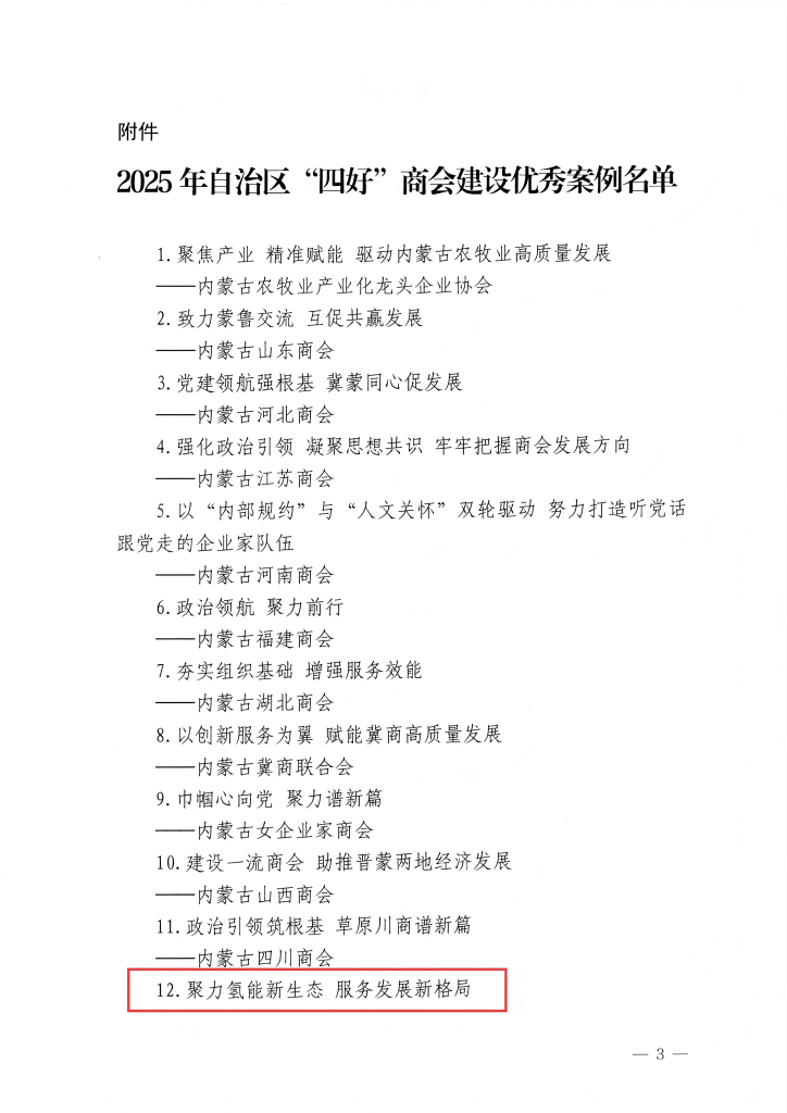 近日,内蒙古自治区工商业联合会公布2025年自治区“四好”商会建设优秀案例名单,内蒙古氢能产业协会成功入选,我们深感荣幸,这是自治区工商联对协会工作的认可与鼓励。